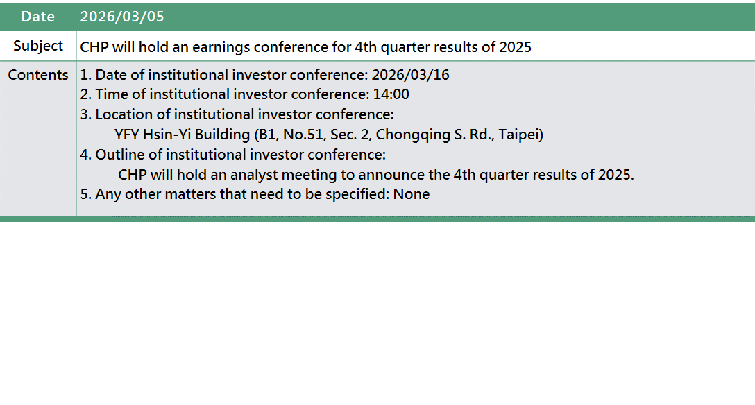 CHP will hold an earnings conference for 4th quarter results of 2025