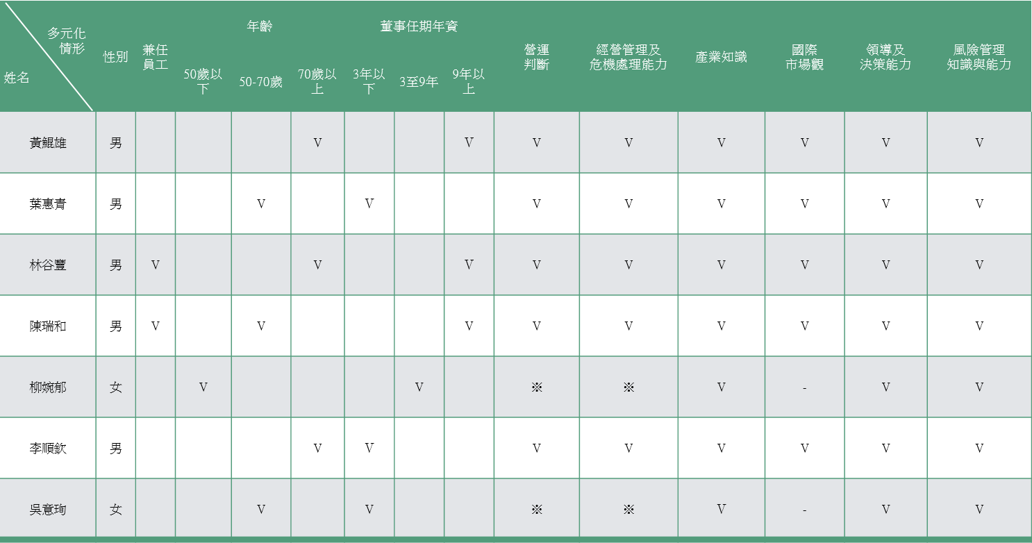 依據本公司章程規定,本公司設董事七至十一人,由董事會於該範圍內訂定應選人數,並採候選人提名制度,由股東會就董事候選人名單中,依公司法第一九八條之規定選任之,任期為三年,連選得連任。董事名額中,獨立董事人數不得少於三人,且不得少於董事席次五分之一。有關獨立董事之專業資格、持股與兼職限制、獨立性之認定、提名與選任方式及其他應遵循事項,依證券主管機關之相關規定辦理。 本公司第20屆董事會目前有7位董事(含3位獨立董事),任期自2025年6月17日至2028年6月16日。