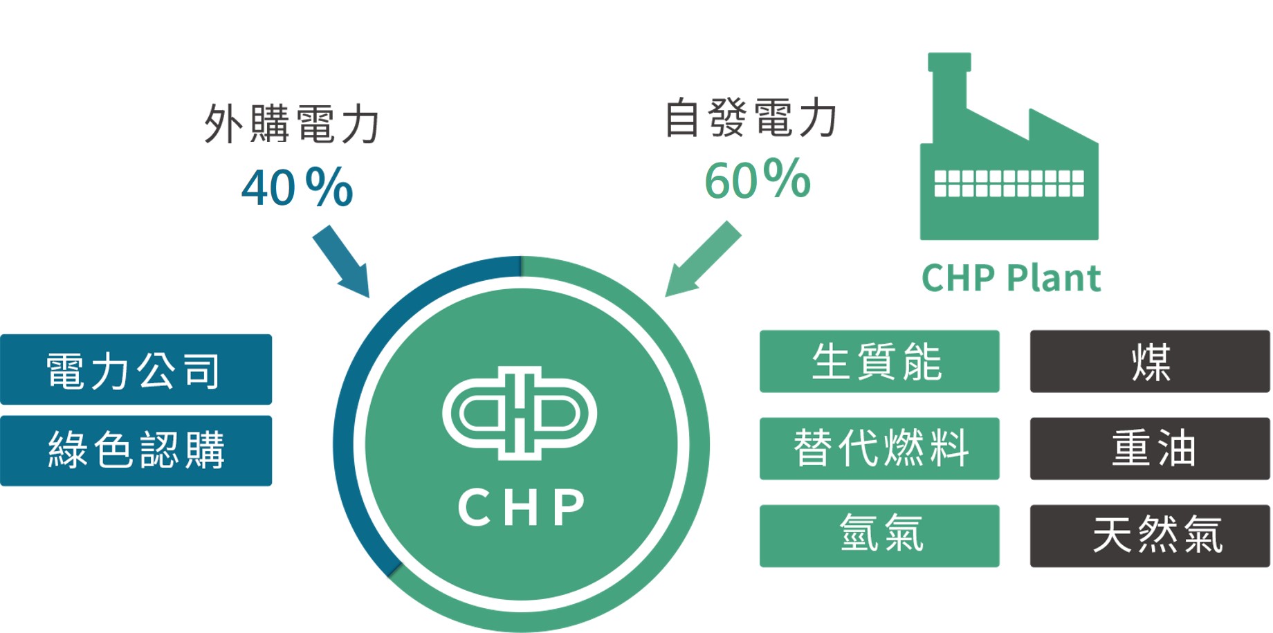我們所有的生產基地皆有汽電共生系統發電,供給50~90%營運生產所需的電力,並適時逆送電力,回饋社會,平衡社區穩定的電力需求。